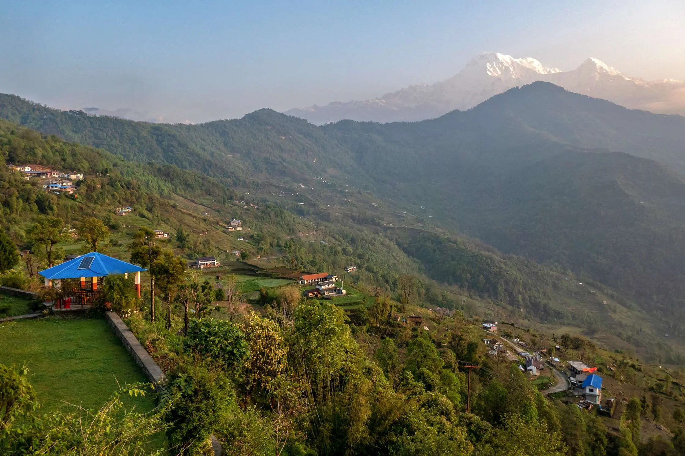 This 7.5 km trek is typically 4 to 5 hours long.  Overnight at a tea house in Deurali. Difficulty: The trail is steep, secluded, and winds through the Modi Khola valley.
